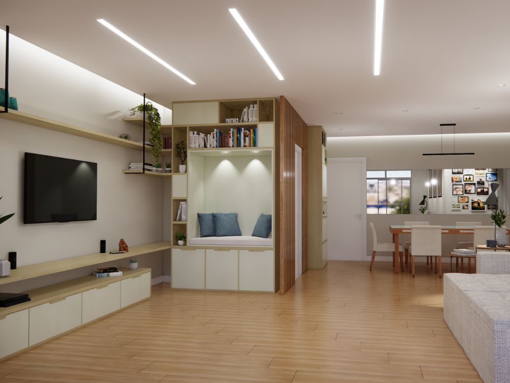 Desenvolvemos projetos personalizados que unem estética, funcionalidade e conforto, transformando ambientes em espaços únicos e acolhedores.